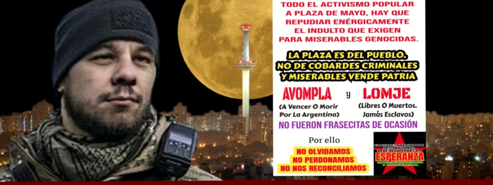 La gente de Esperanza nos informa que movimientos sociales y políticos, convocan a una gran movilización en la Plaza de Mayo para este sábado 29 de noviembre para manifestar su “repudio enérgico” ante el creciente reclamo de indultos para los militares condenados por crímenes de lesa humanidad de la última dictadura.