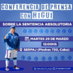 En el marco de la repercusiones tras la absolucion de Higui Dejesus, desde la Asamblea por la abasolucion de Higui queremos convocarles a la conferencia de prensa con Higui y sus abogadas que se llevará a cabo mañana martes 29/3 12 hs en el espacio del SEPAJ sito en Piedras 730, CABA.