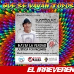 El dinamismo de la pauta nos obligó a volver con la desaparición de Facundo Astudillo al cierre de esta Emisión 28 de El Irreverente. Este domingo 23/8, siendo el cumpleaños 23 de Facundo Astudillo Castro, coloquemos en todo espacio particular de visibilidad pública (puerta de casa, balcón, lugar de laburo, muros y perfiles de redes sociales) este cartel en conmemoración de su vida. Que el Estado sepa que seguimos en la lucha y que somos mucho más que la gran mayoría de los ciudadanos lo que exigimos Justicia para Facundo.