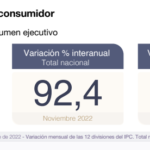 Este jueves a las 16 horas, puntualmente como siempre, el INDEC publicó el Índice de Precios al Consumidor (IPC) del mes de noviembre, que esta vez se situó en el 4.9%. La inflación interanual marcó una variación del 92.4% y la acumulada en 2022 varió en un 85.3%.