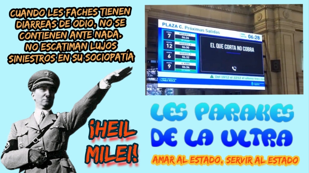 Lo increíble es ver a ambientalistas que han tomado tanto malsano fastidio al peronismo que justifican de antemano los ajustes y la violencia estatal que nos esperan con Les Chukys en la Rosada. Que comienzan a decir que con los kirchneristas iba a ser peor y ensayan que “le demos tiempo” a quienes sabemos que son extractivistas, antioriginarios, antiderechos y homofóbicos como mínimo. Esperemos se calmen ya que correrás la misma suerte que les que se vendieron a Massa, con el correr de los días tendrán que justificar al Diablo y fustigar a les que luchan cual Caínes modernos. Les pasará lo mismo que a les que se vendieron o claudicaron en gestiones anteriores, perder la esencia de lucha y terminar sirviéndose pasado en copas nuevas.