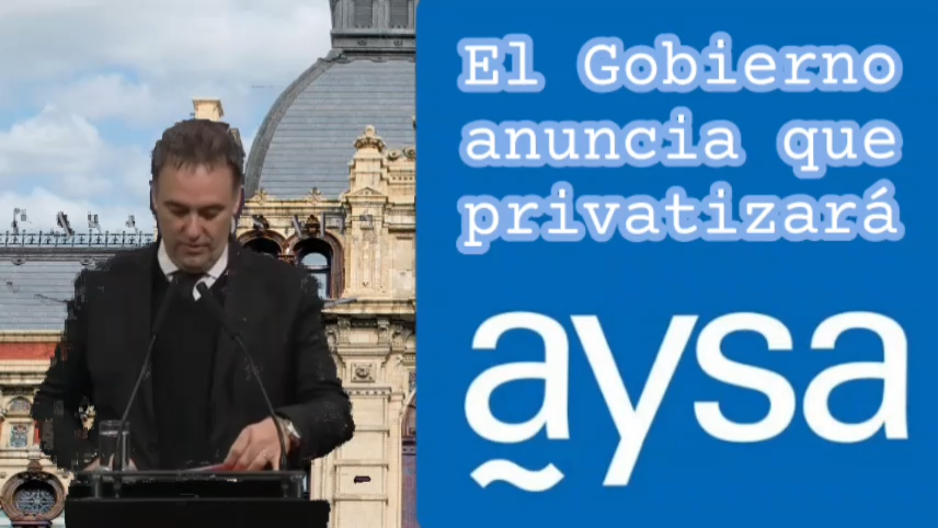 El 18 de julio en la tradicional reunión con la Prensa acreditada en la Casa Rosada, el Vocero Presidencial Manuel Adorni anunció privatización de AySA, la empresa pública argentina encargada de proveer servicios de agua potable y cloacas en la Ciudad Autónoma de Buenos Aires y 26 partidos del Conurbano Bonaerense.
