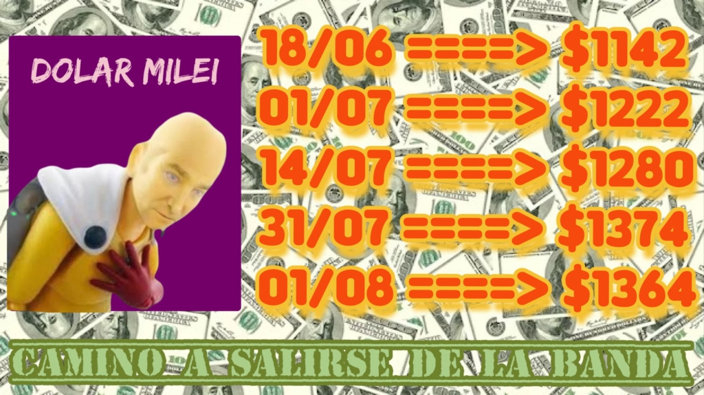 El dólar arrancó al 18 de junio en torno a los 1142,50 pesos y desde allí al 1° de julio ya alcanzó los 1222 pesos. Al Gobierno, más aún a poco de tener que afrontar elecciones de medio término, la suba del dólar no le conviene para nada. Ya para el 14 de julio el “oficial” alcanzó los 1280 pesos y el 31 de julio casi se les fue de la banda llamada de flotación, cotizando a 1374 por unidad. El 1° de agosto, antes del primer fin de semana del mes lograron colocarlo en los 1364 pesos.