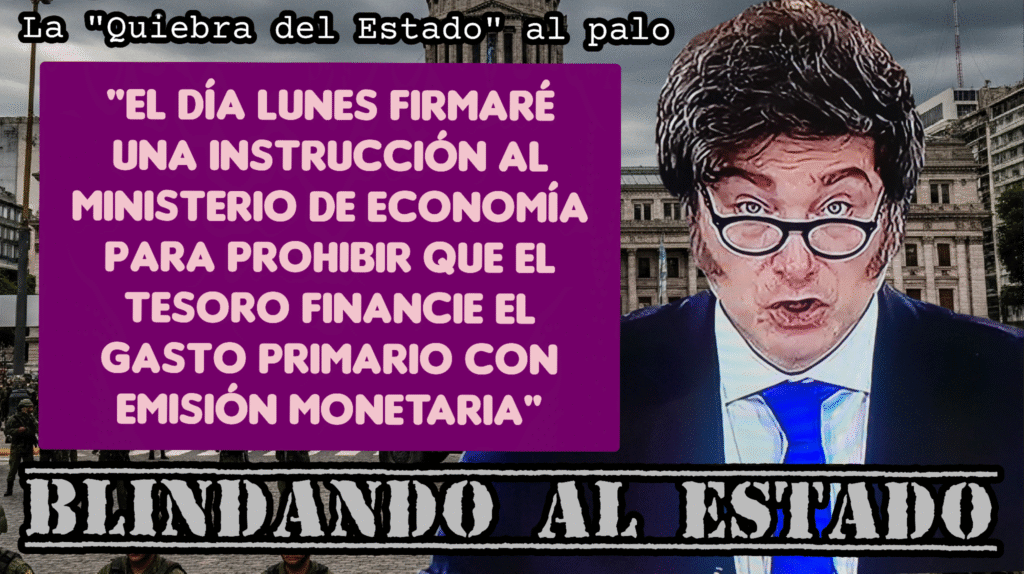 - “El día lunes firmaré una instrucción al Ministerio de Economía para prohibir que el Tesoro financie el gasto primario con emisión monetaria”: Sí, el Presidente no cita ningún instrumento legal para eternizar políticas de Gobierno, pasándose por las partes a todo el mundo. Acá de nuevo aparece la mitad del delirio de todas las medidas que toma Milei que parecen extraídas del capricho de un niño: prohibir con una instrucción, o es demasiado confiado de su poder o es demasiado ignorante, de todas maneras es otro siniestro peligro al frente del país.