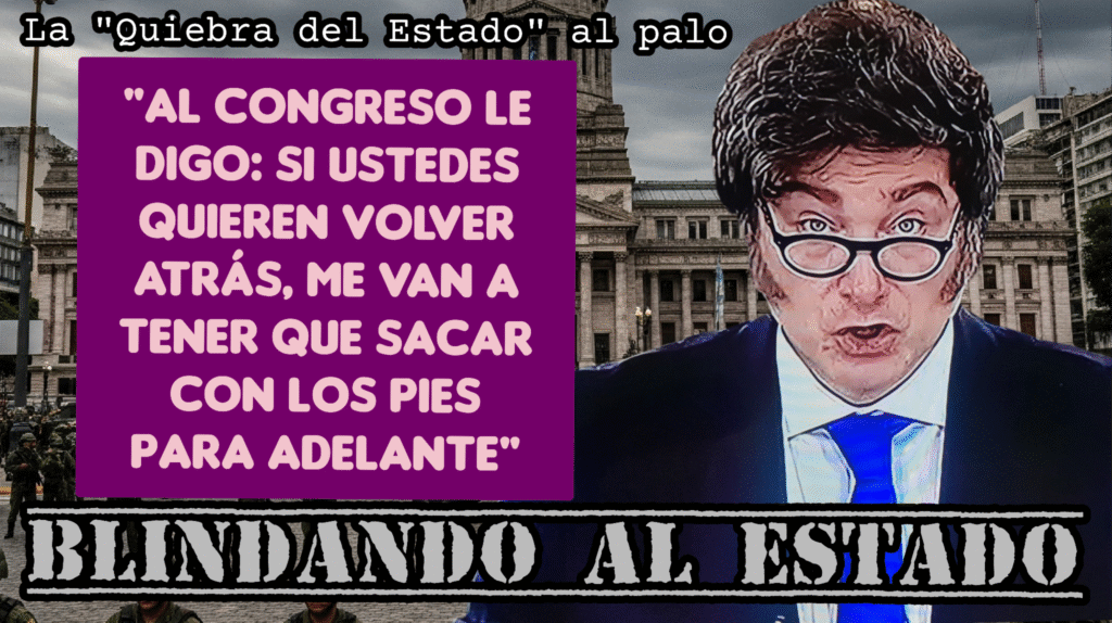 - “Al Congreso le digo: si ustedes quieren volver atrás, me van a tener que sacar con los pies para adelante”: otra vez Milei mostrando su tremenda debilidad ante el Congreso de la Nación vuelve a decir que se inmolará por defender su Gobierno y le da ideas a gente que no está bueno que un Presidente ande soltando así como si nada.