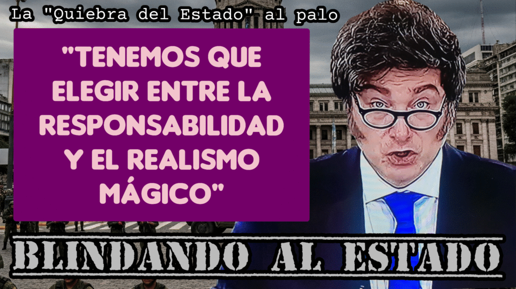 - “Tenemos que elegir entre la responsabilidad y el realismo mágico”: curioso que nuestro Presidente que suele recurrir a él para graficar aquellas situaciones en las que no tiene una cita donde agarrarse y que no caiga en desgracia. Milei se siente en los zapatos de Jesús y nos habla en parábolas por que no supone idiotas. Su mesianismo lo pone en inventarse un lugar de responsabilidad que le queda bastante grande y pone al resto del país que no avala sus idioteces en un lugar de fantasía. Esto dicho por un tipo que parece que vive en Narnia y no en la Argentina.