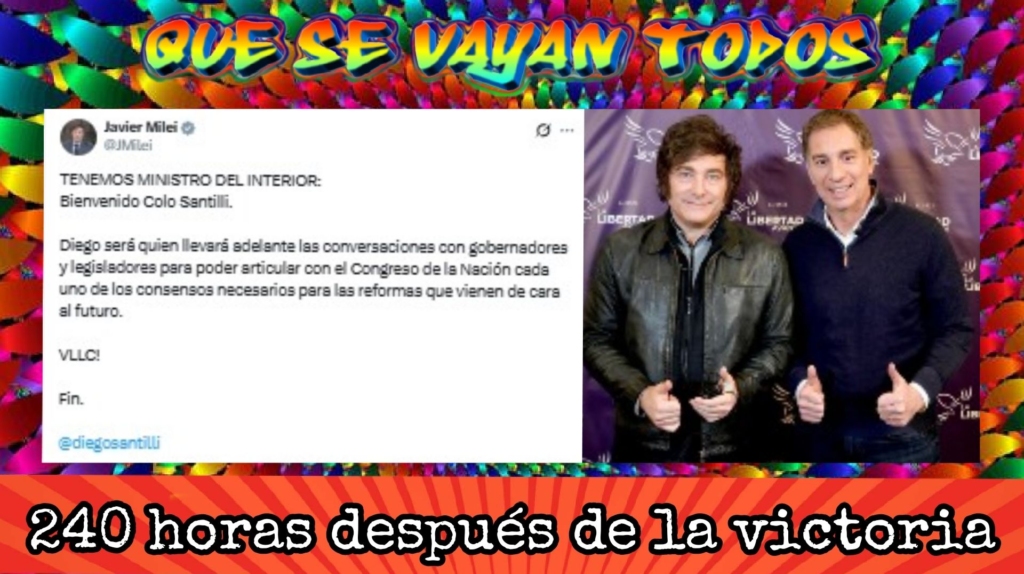 Tras terminar a los sopapos con Macri, el 2 de noviembre Milei anunció que Diego Santilli será el próximo Ministro del Interior de la Nación.