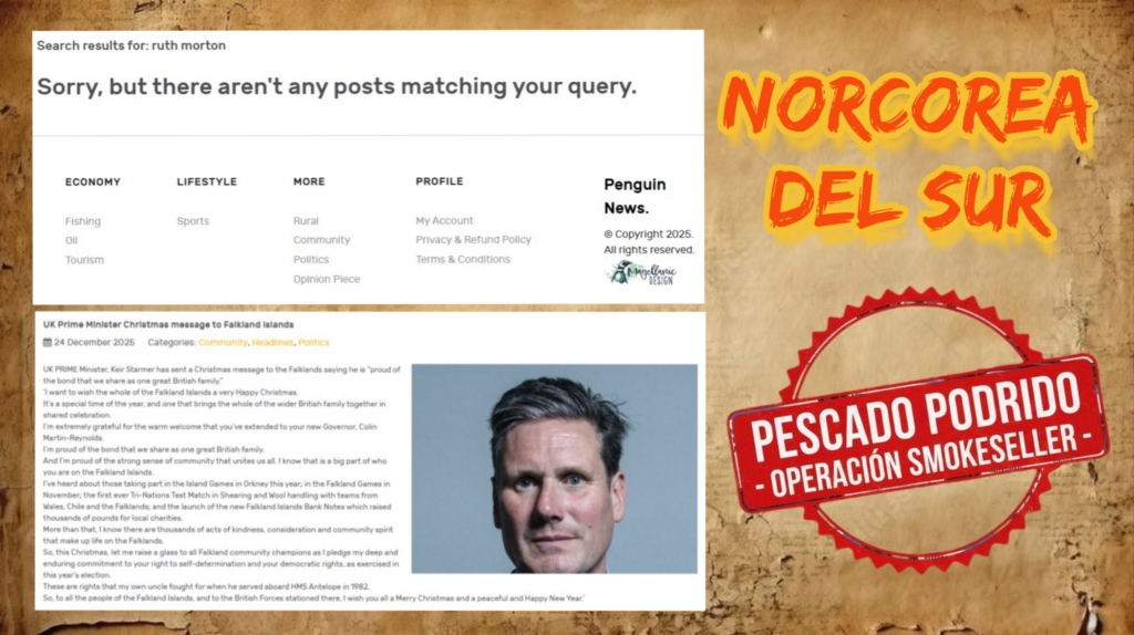 Lo más revelador de esta opereta es el vacío absoluto de respaldo: el Penguin News (el pasquín de las islas) ni siquiera registra el nombre de Ruth Morton. Lo que SÍ publica hoy, 24 de diciembre de 2025, es el mensaje de Navidad de Keir Starmer.