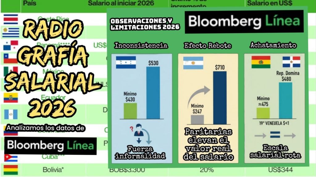 - Países con “Mínimos Múltiples” (Panamá): Bloomberg tiene dificultades con Panamá porque no tiene un SMVM único (depende de zona y tamaño de empresa). Sin embargo, su promedio es el 2° más alto de la región por su alta productividad y sector financiero.