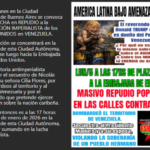 La convocatoria antimperialista reclama por el secuestro de Nicolás Maduro y su señora Cilia Flores, por los bombardeos al territorio y al pueblo de Venezuela y por el protectorado que pretende ejercer Washington sobre la nación caribeña.