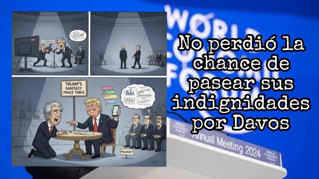 - La respuesta del “infeliz”: En lugar de un gesto de dignidad o una protesta formal, Milei corrió al día siguiente a “hacerle la pelota” al magnate, integrándose a esa ridícula y pomposa “Mesa de Paz”.