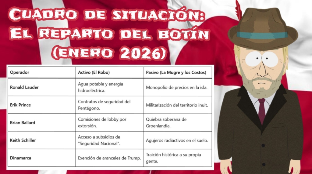 Groenlandia es el lado B de una misma farsa donde el patriotismo sirve para tapar la caja fuerte. Dan asco mal porque mientras hablan de “liberar el Ártico”, le clavan a los groenlandeses un modelo que les envenena el agua. No son estadistas, son liquidadores de activos.
