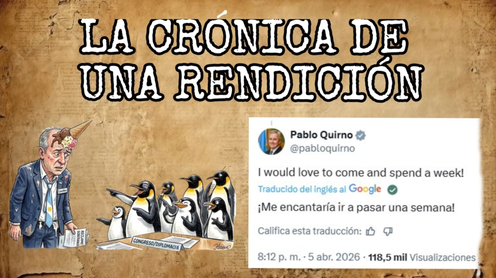 Este es el clavo en el ataúd de la dignidad nacional. El Canciller de la República Argentina le contesta al ocupante con una sumisión que da náuseas: “Me encantaría ir una semana, por favor haceme saber cómo lo organizo”.