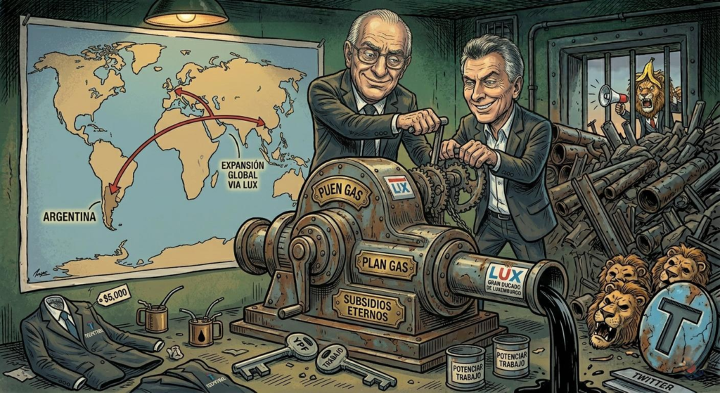 El fondo de esta alianza es mantener el sistema de bombeo de dólares hacia el Gran Ducado de Luxemburgo. Mientras a vos te hablan de “soberanía” y te ponen cepos, el Estado le garantiza a Tecpetrol subsidios millonarios vía Plan Gas. Son, como decimos en Locomoción TV, el “Potenciar Trabajo” con traje caro.